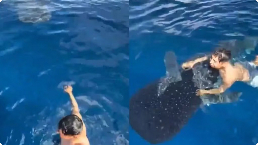 Las imágenes muestran a los hombres interactuando y acariciando al enorme pez cerca de la superficie, lo que generó una mezcla de asombro y debate entre los usuarios de internet.